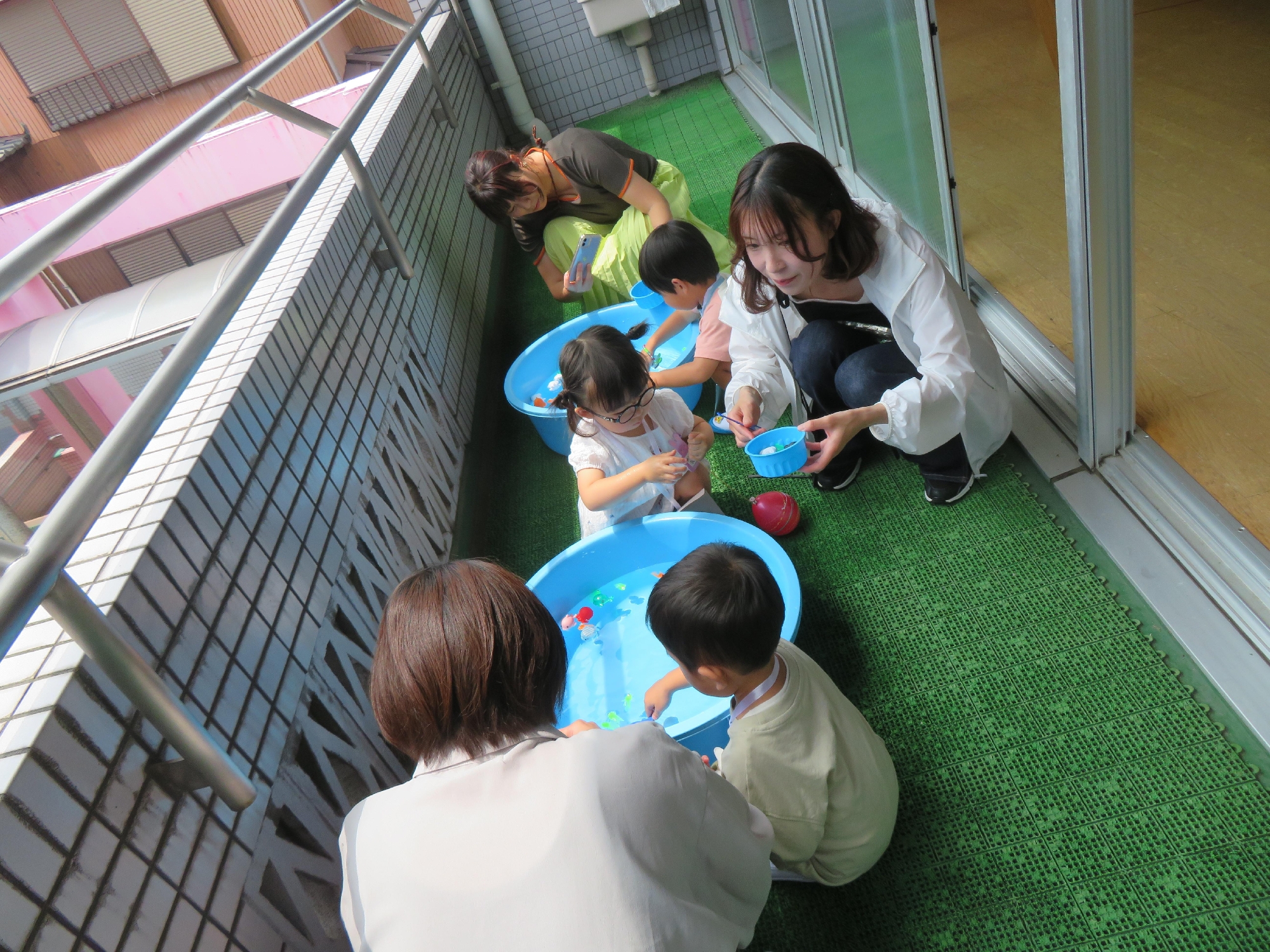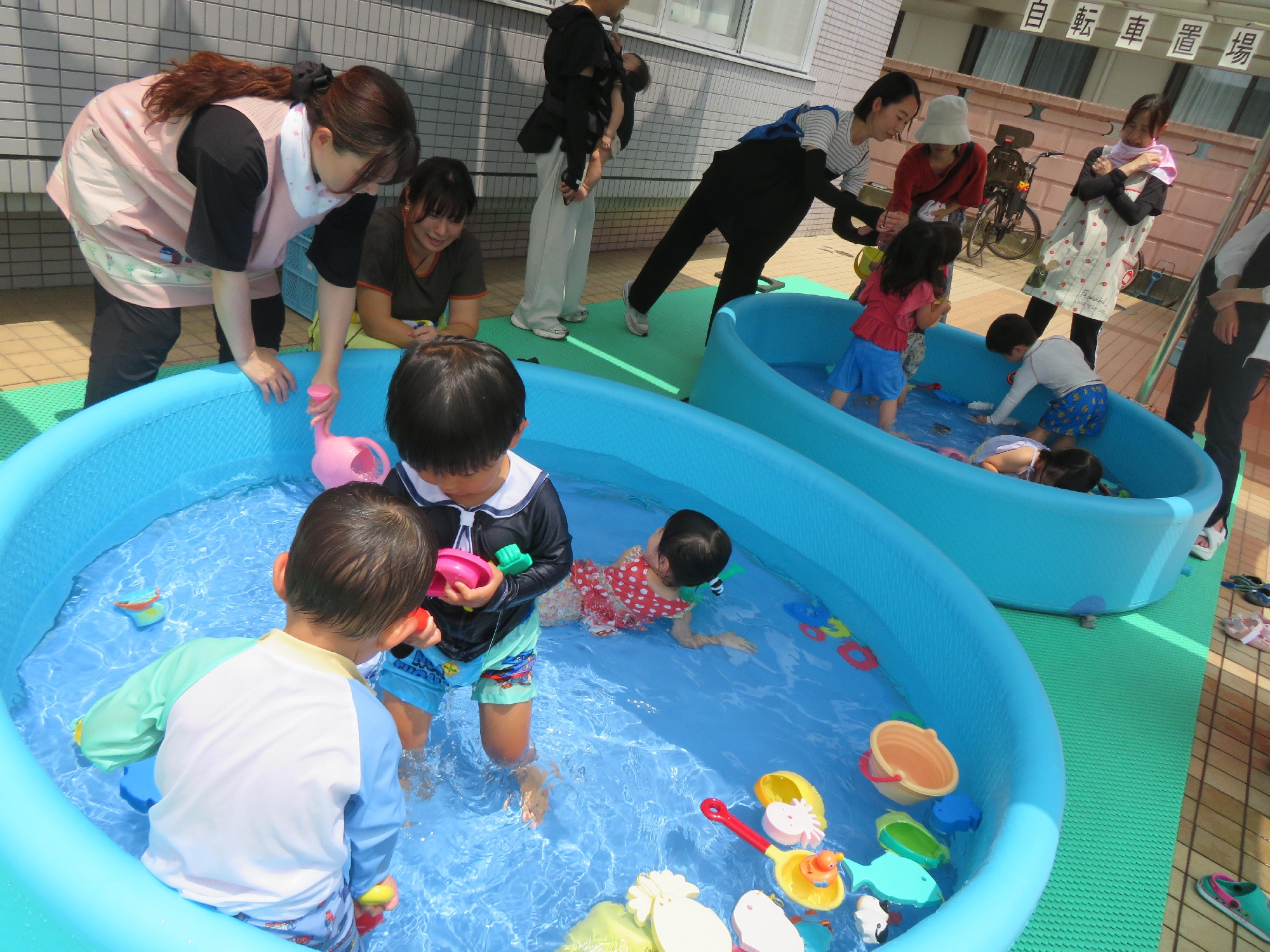 内容は、「幼稚園の先生と遊ぼう」「水遊び」です!
