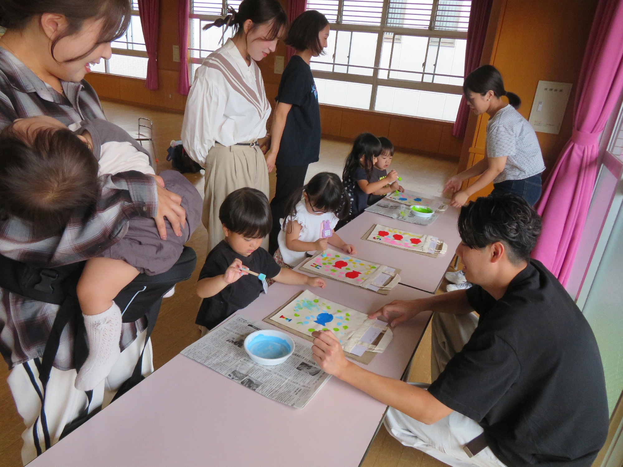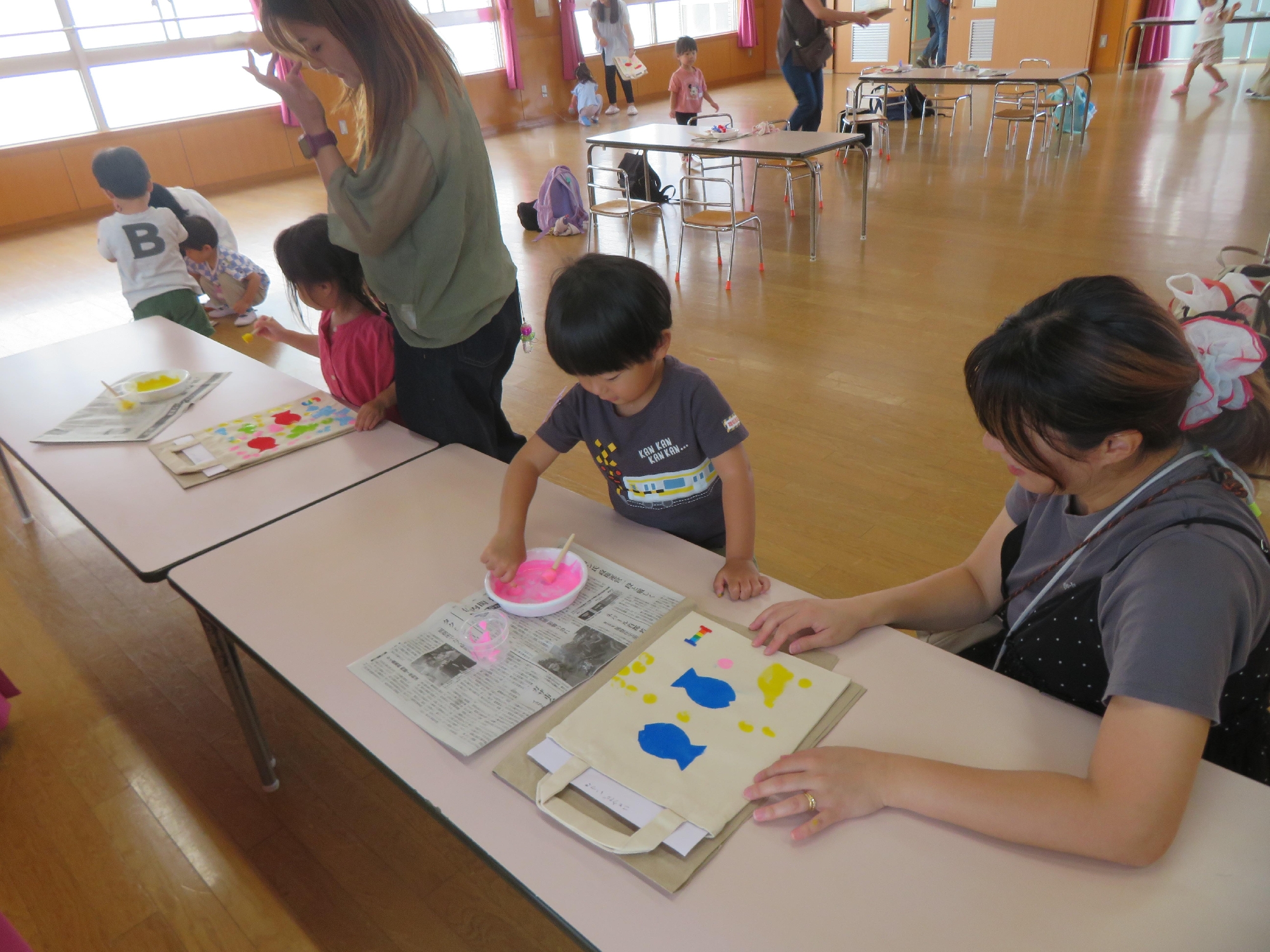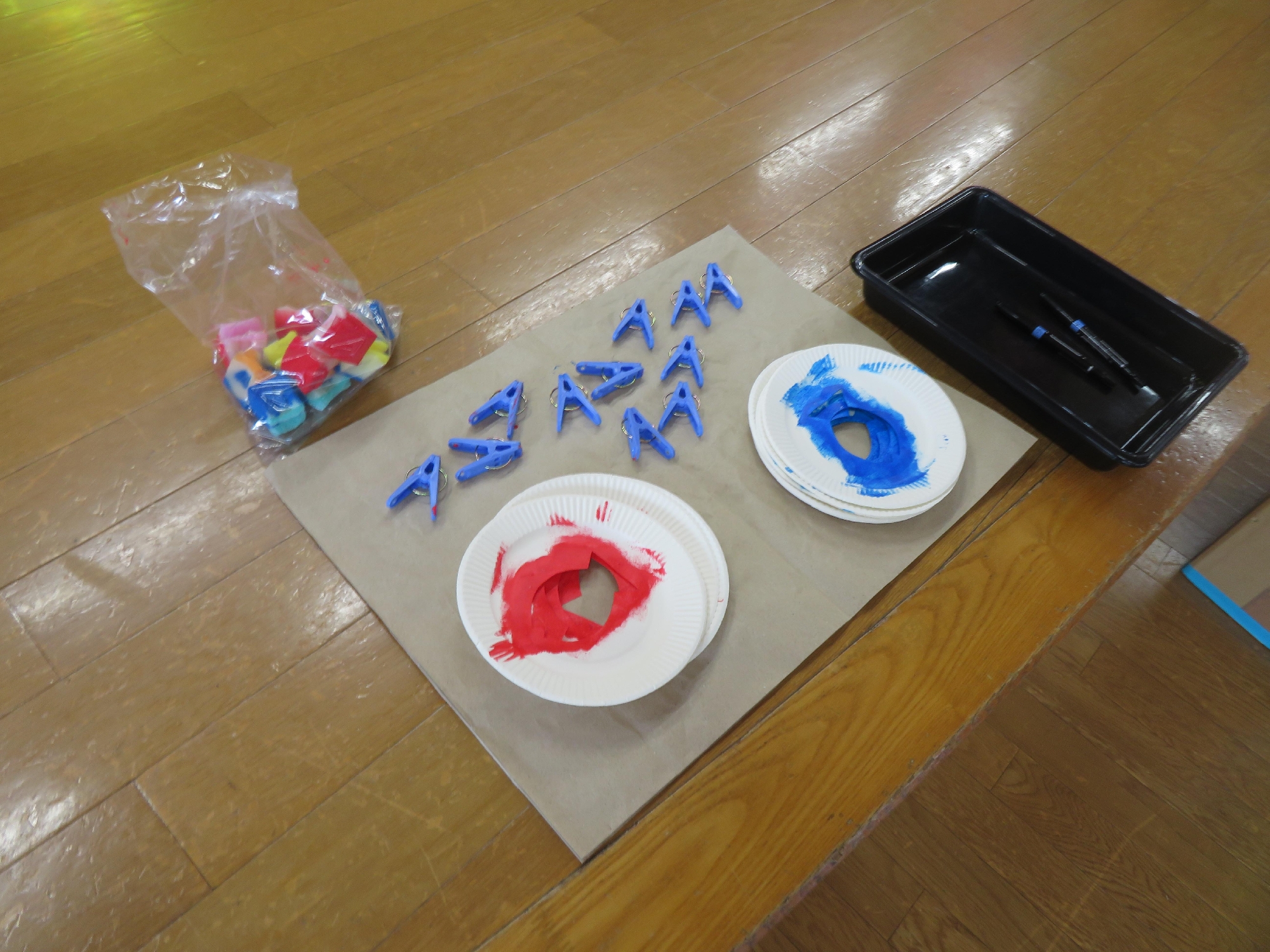 色々な色、洗濯ばさみや色々なスタンプを使って楽しく遊びました🐟